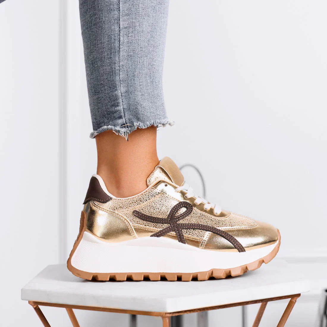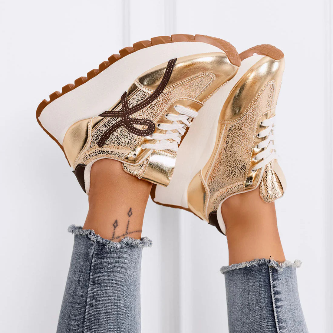 Baskets dorées au style décontracté et polyvalent, enrichies de détails verts contrastants et d'une semelle crantée qui garantit adhérence et stabilité. Idéales pour ceux qui recherchent une chaussure pratique et confortable à porter tous les jours, parfaite aussi bien avec des jeans qu'avec des looks sportifs 👟✨
