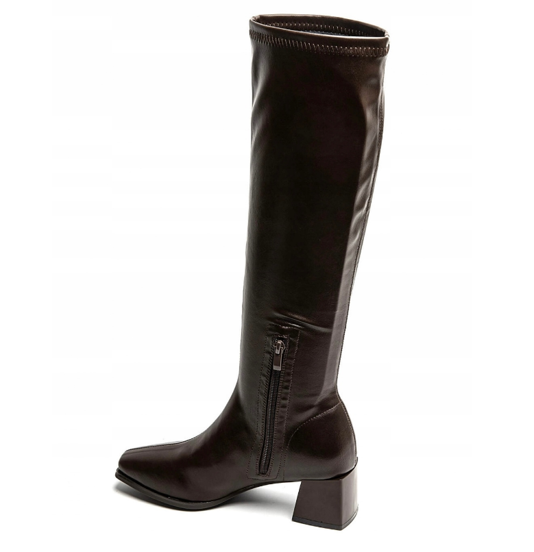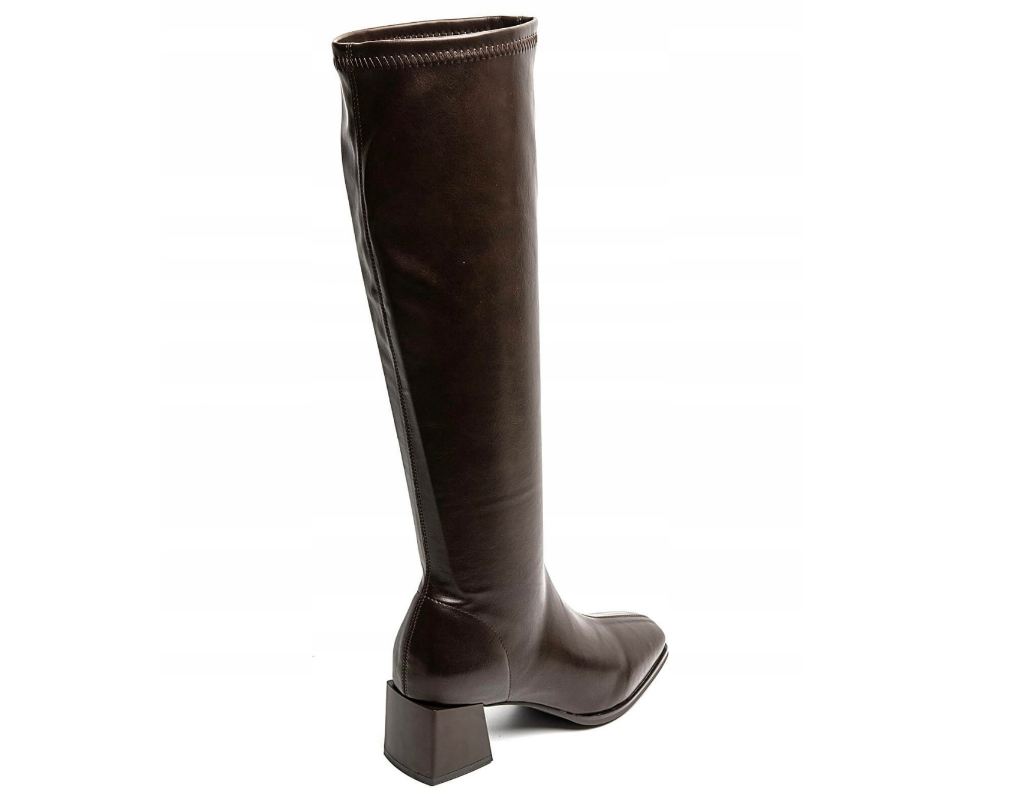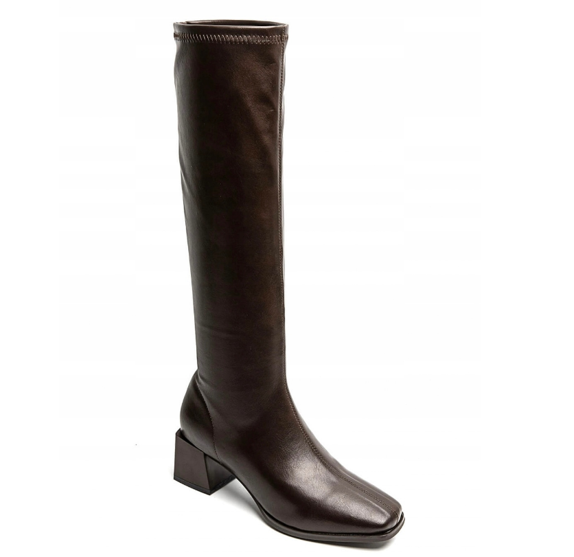 Botte haute à talon bas avec semelle en caoutchouc antidérapante