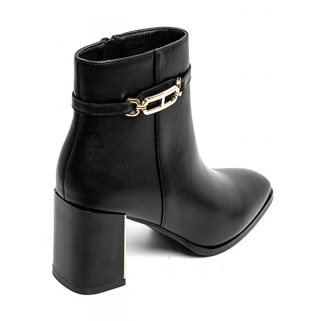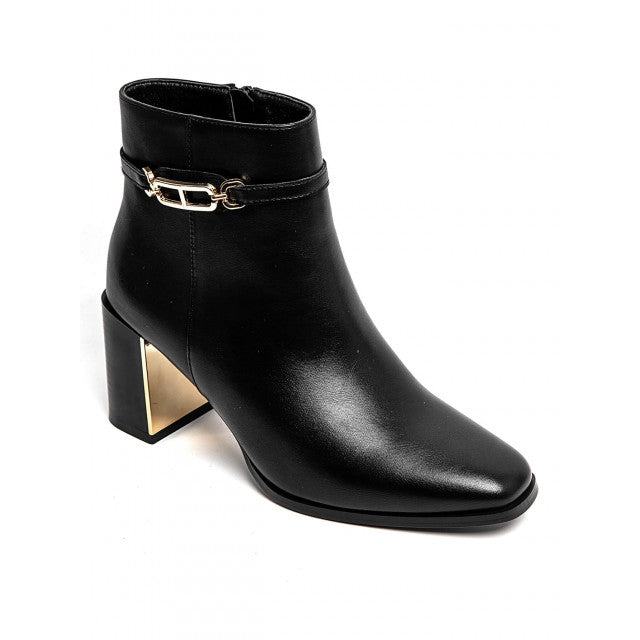 Ces bottines en marron profond allient élégance et modernité. Leur talon carré offre confort et stabilité, tandis que le détail doré apporte une touche raffinée qui rehausse instantanément vos tenues. Idéales pour accompagner vos looks de bureau comme vos sorties en ville, elles se portent aussi bien avec une jupe qu’un pantalon.