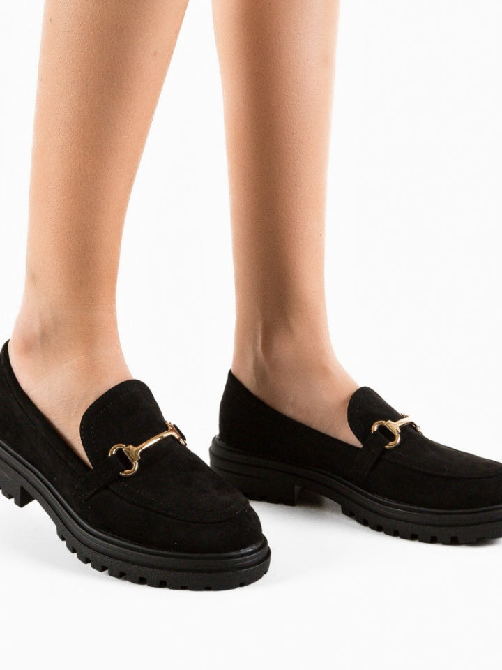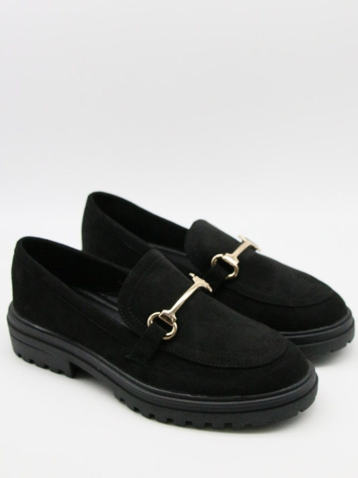 Mocassin suédine semelle épaisse boucle dor Noir