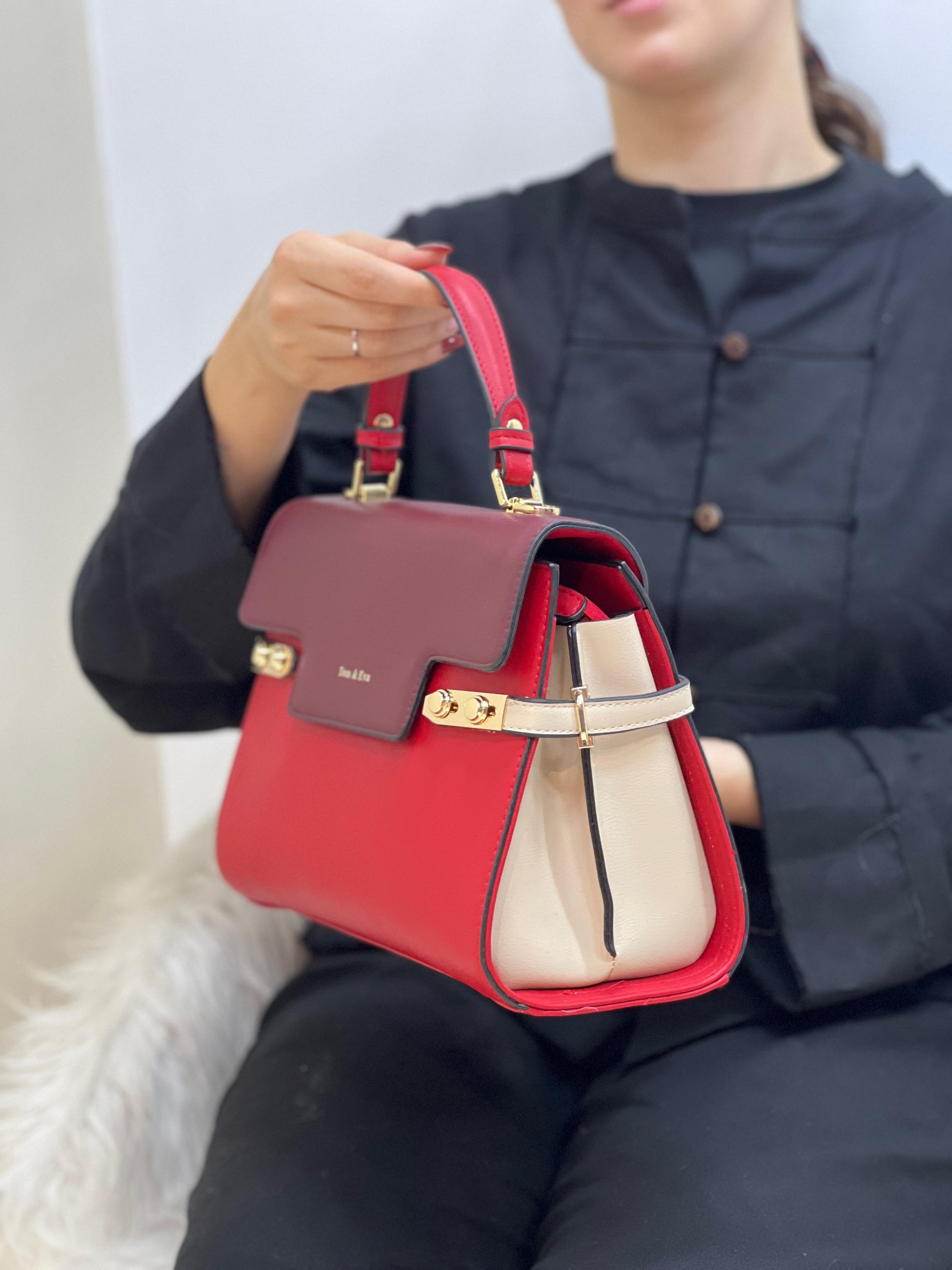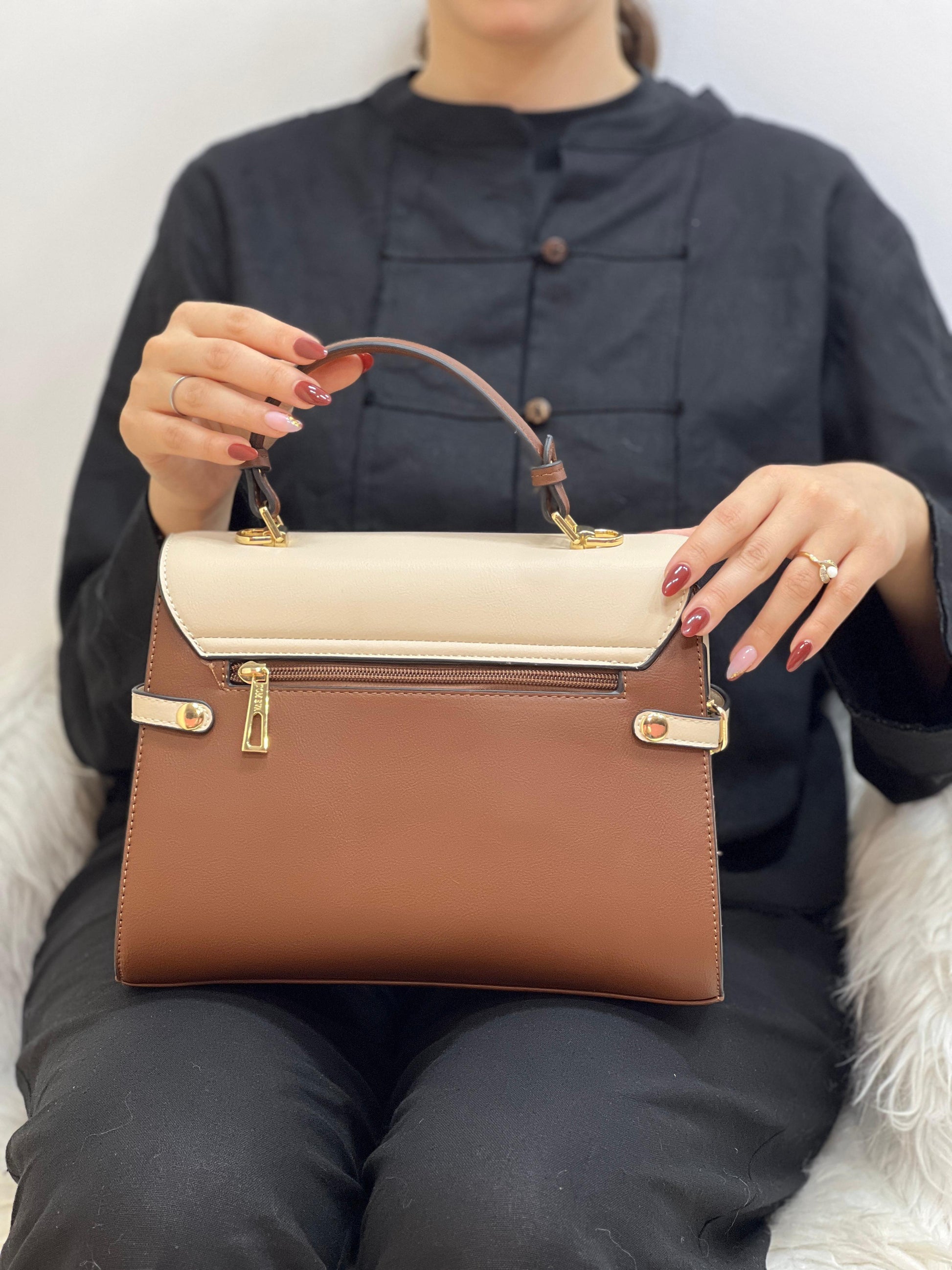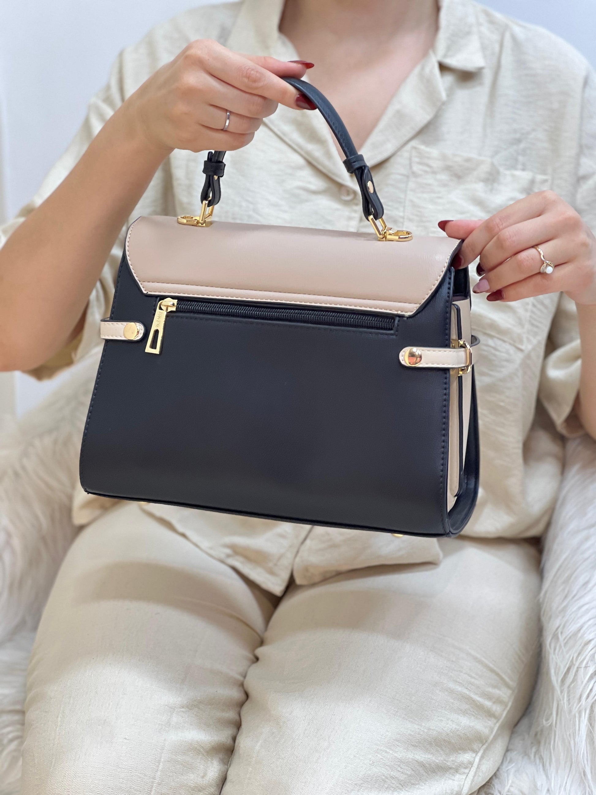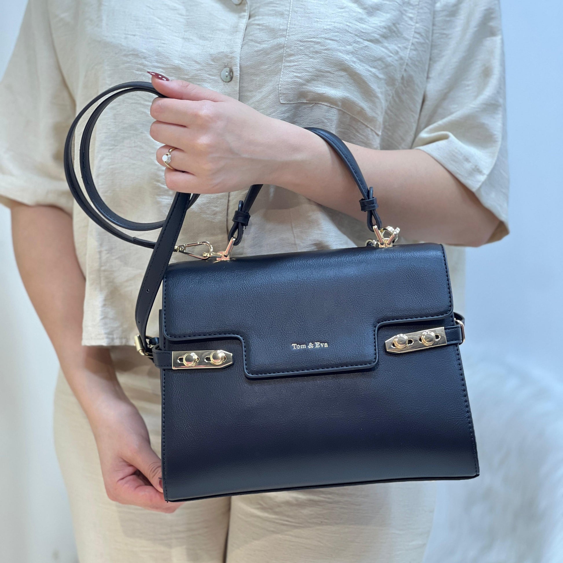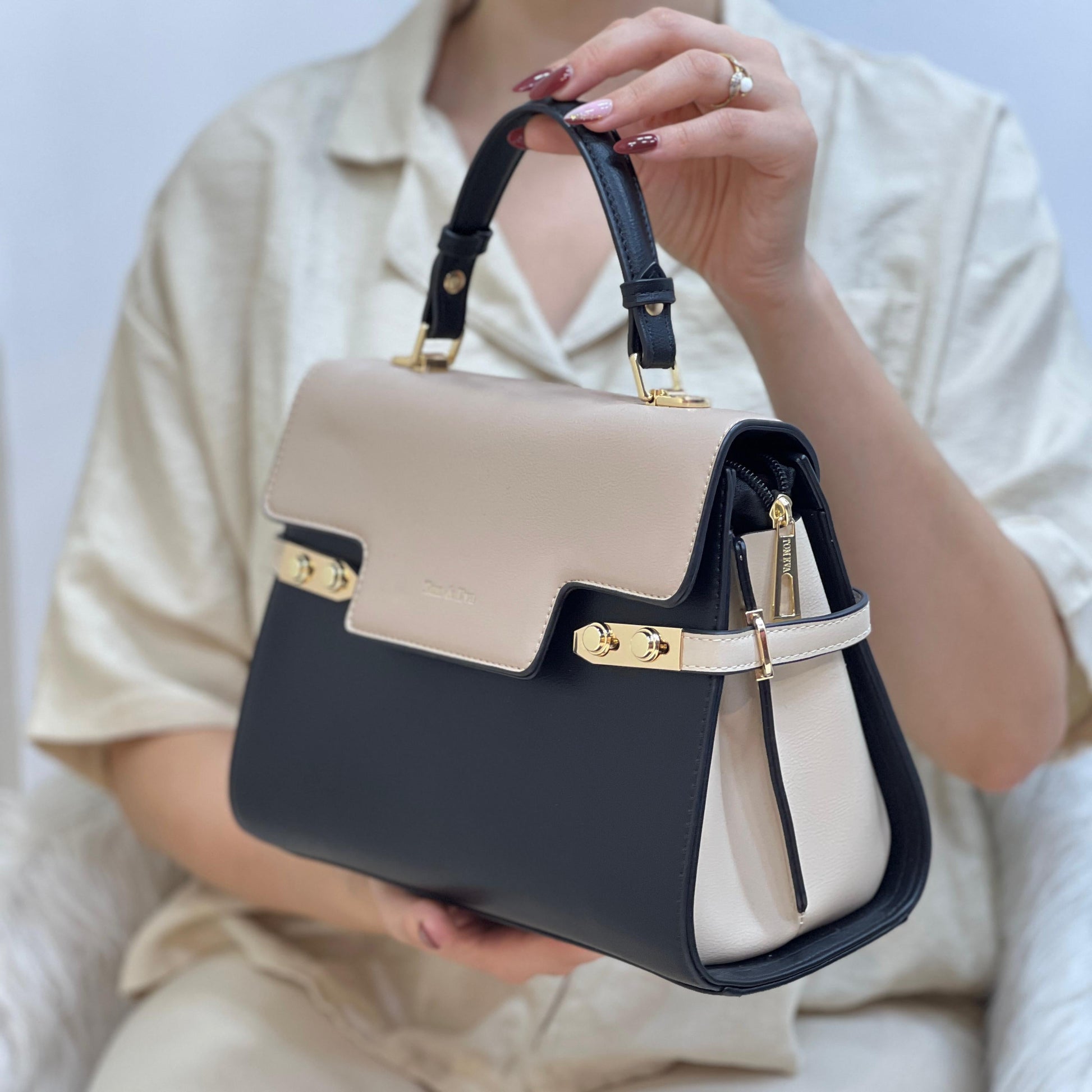 Très beau et élégant sac à main design Tom & Eva. Fabriqué en cuir écologique de haute qualité. Une belle combinaison de couleurs, un style italien et des accessoires dorés contribuent à l'aspect luxueux de ce sac à main d'été. Une bandoulière amovible est également incluse.