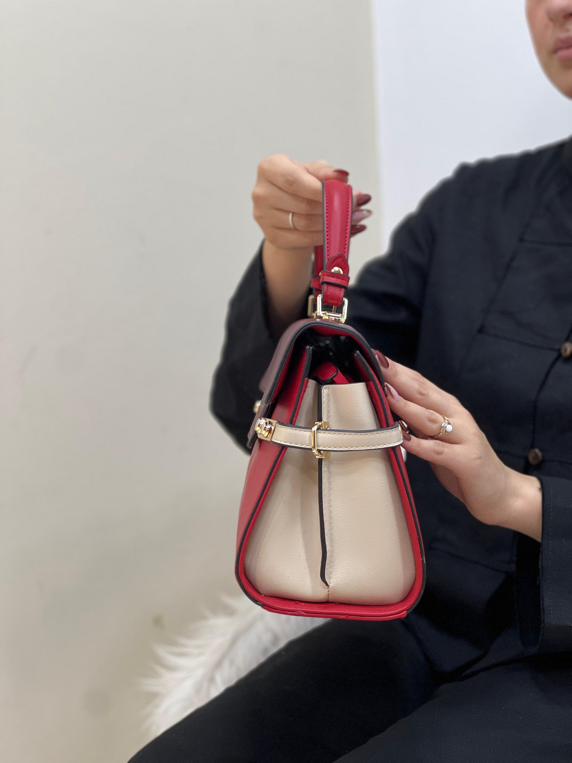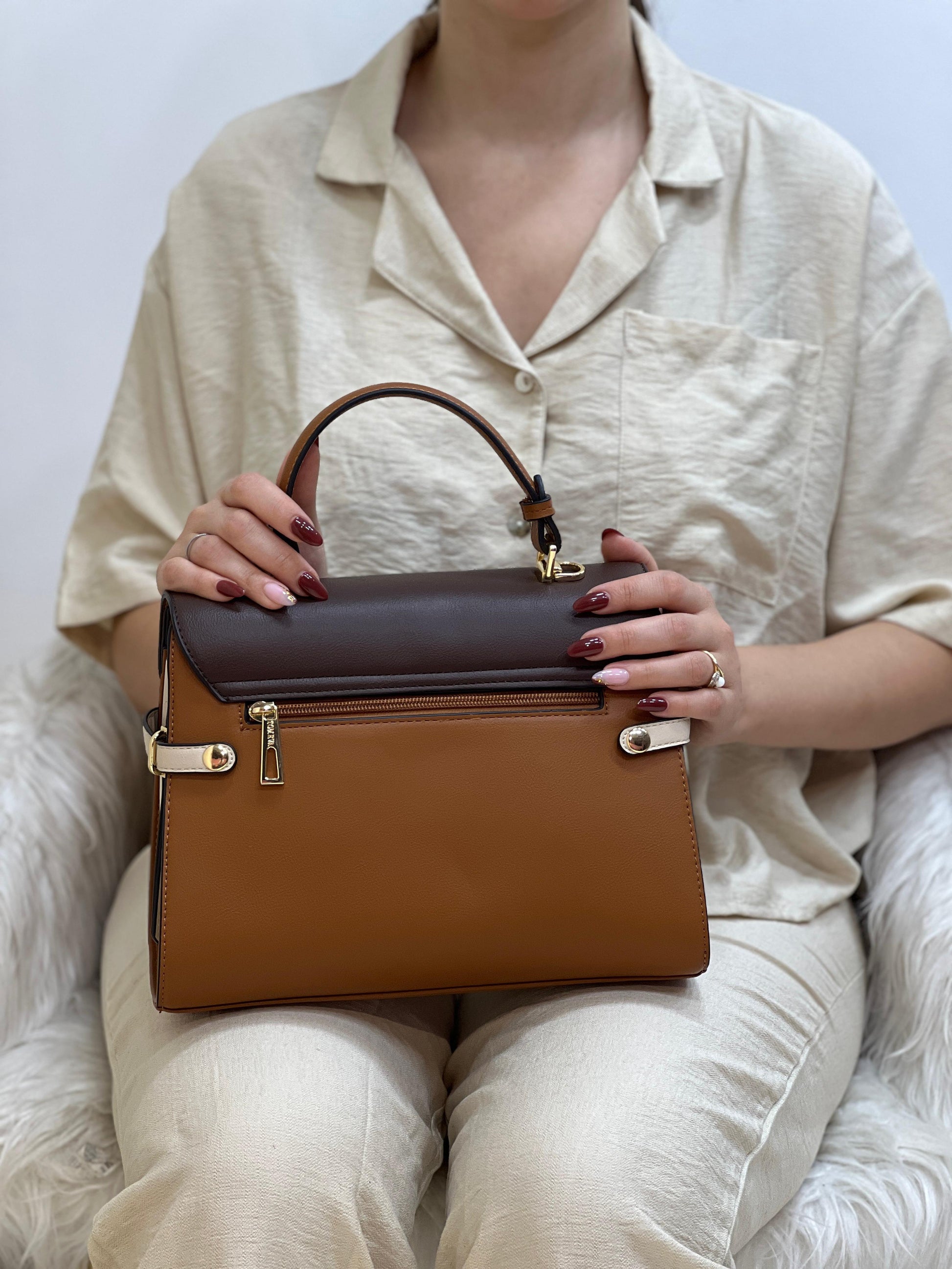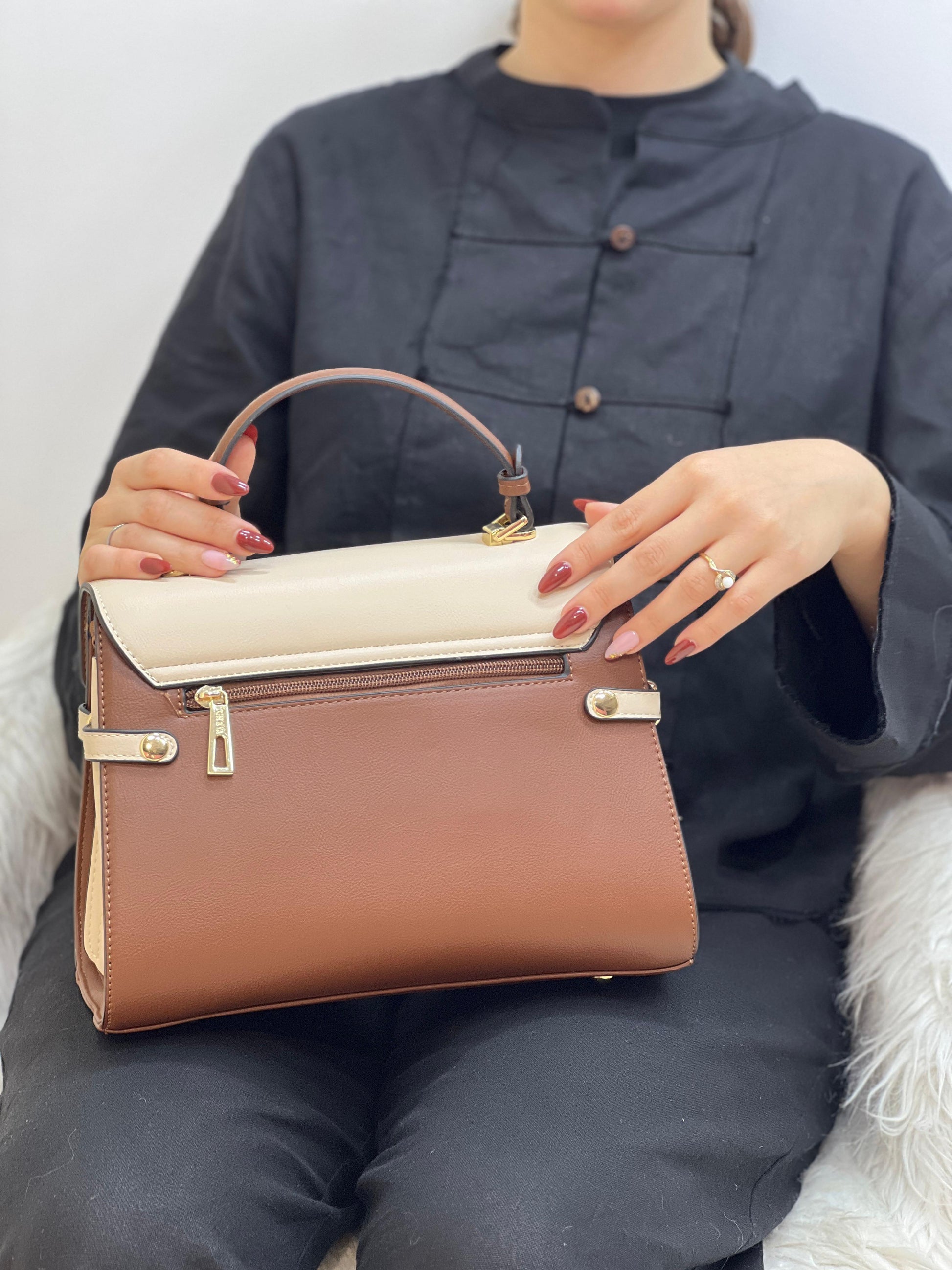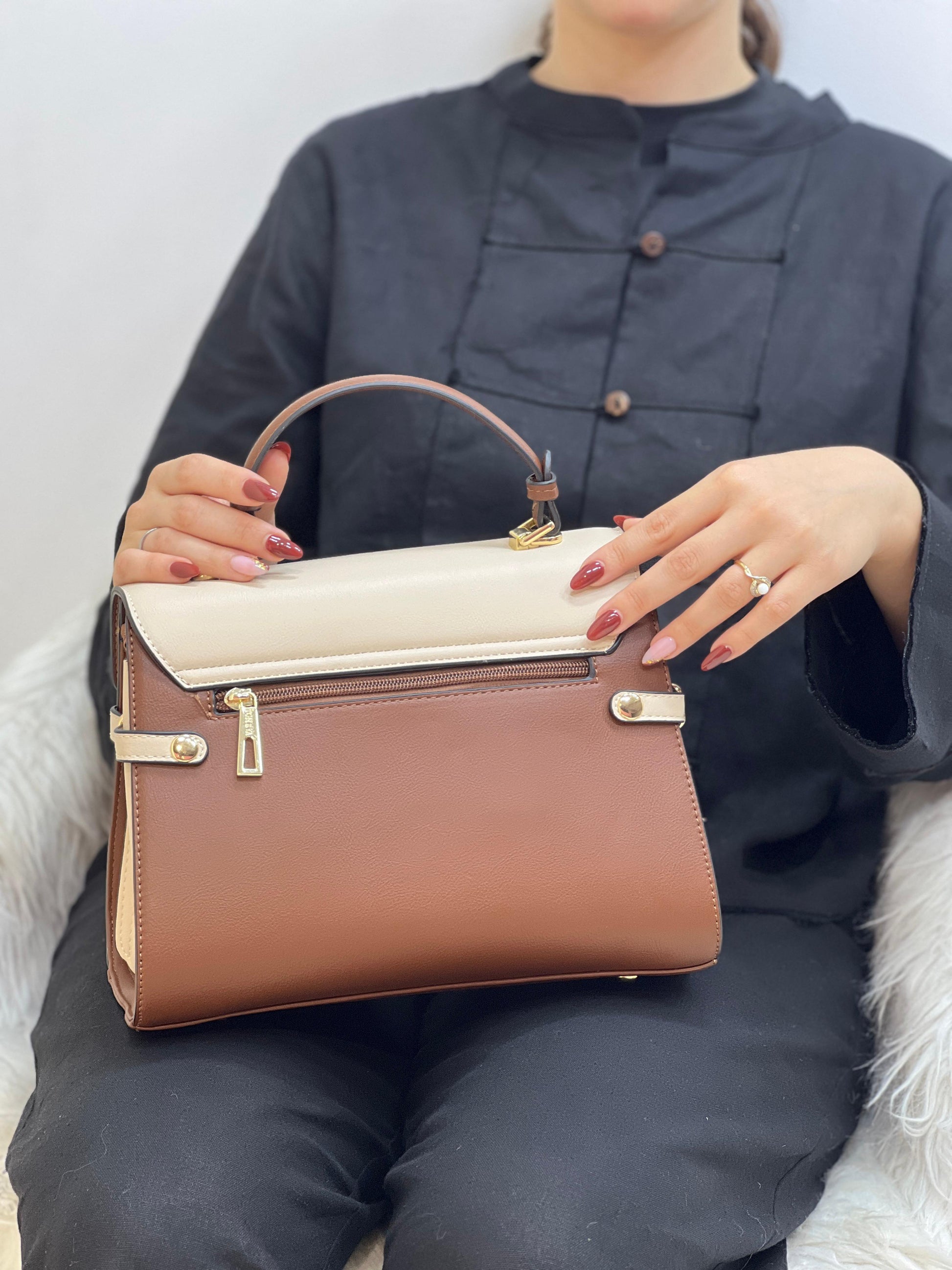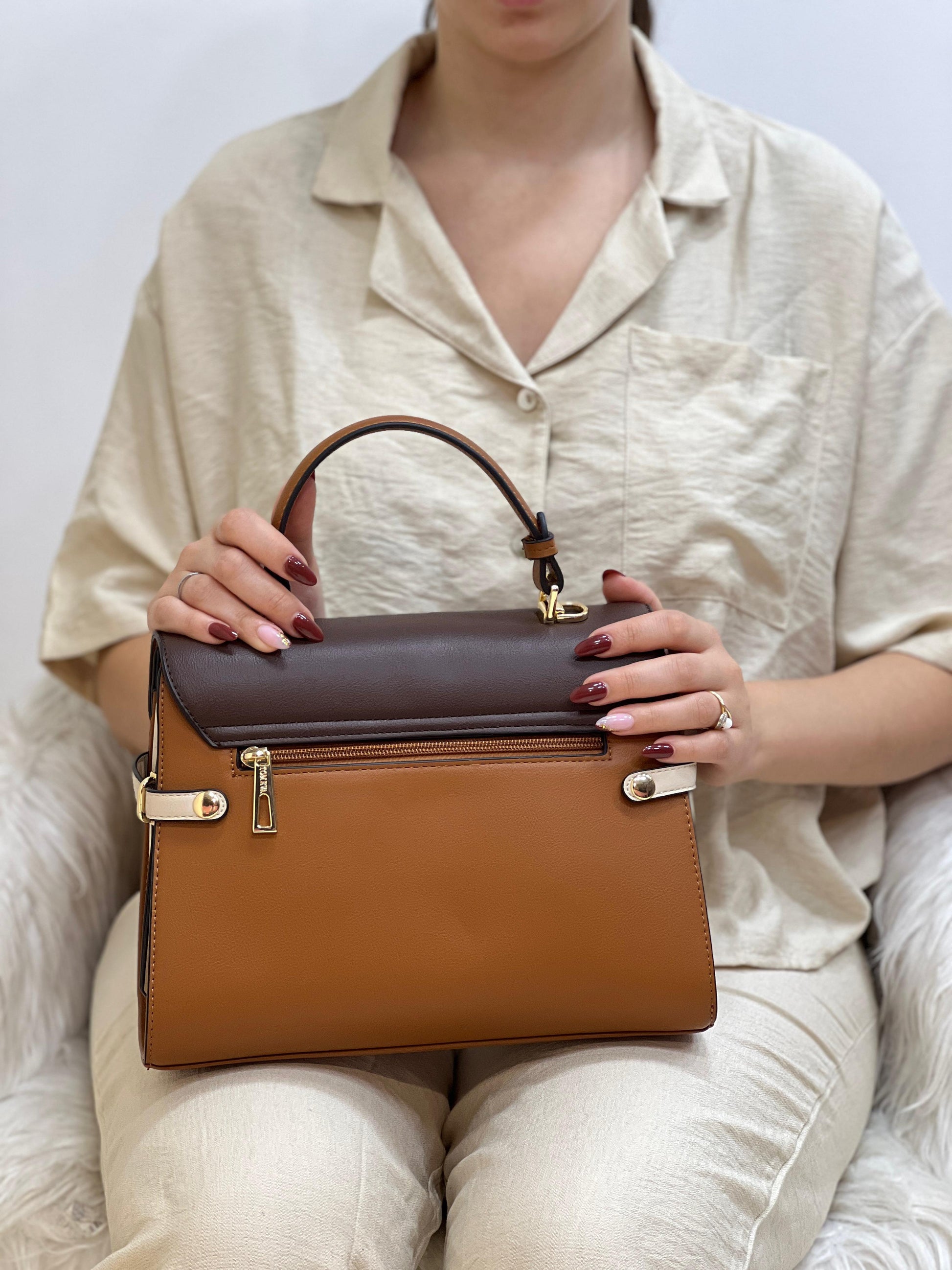 Très beau et élégant sac à main design Tom & Eva. Fabriqué en cuir écologique de haute qualité. Une belle combinaison de couleurs, un style italien et des accessoires dorés contribuent à l'aspect luxueux de ce sac à main d'été. Une bandoulière amovible est également incluse.